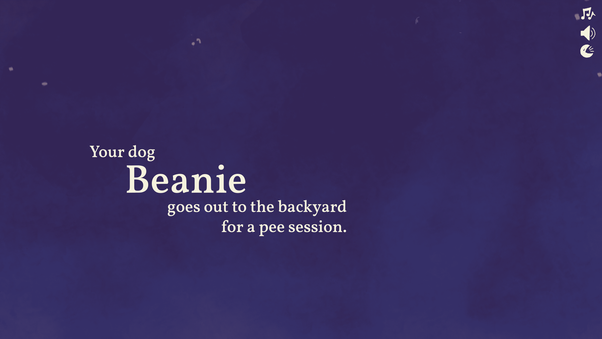The story is told from the perspective of Beanie’s owner, who must venture into the woods at night to find their dog Beanie, after he chases after the animal who took his bandana. Along the way, the user meets the animal suspects, noting observations about them in their notepad. At the end of the story, the user must use Beanie’s clues and the notes taken to figure out who the culprit is.