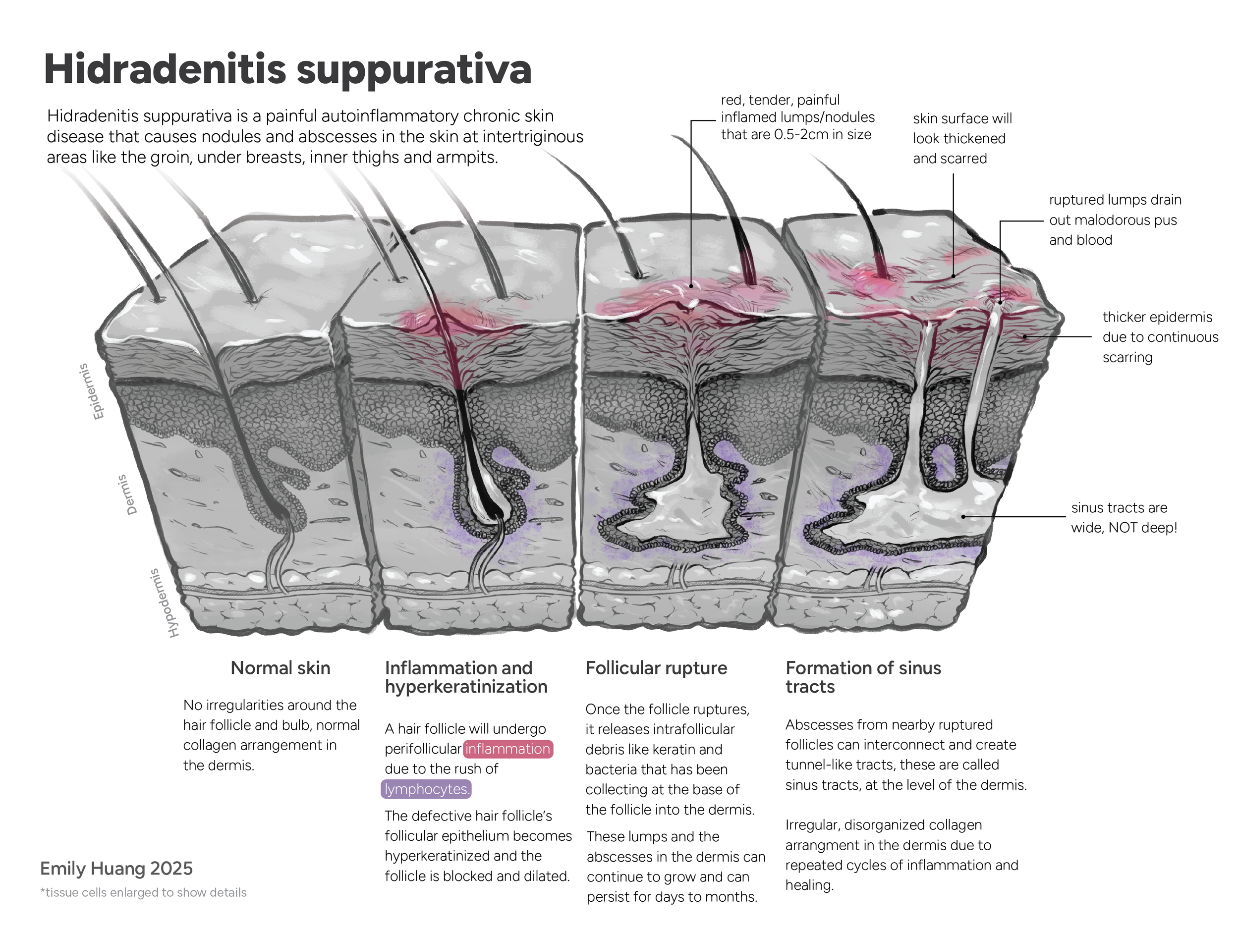 A tissue study and realistic study, along with background research collection was done to understand how HS affects the skin layers.