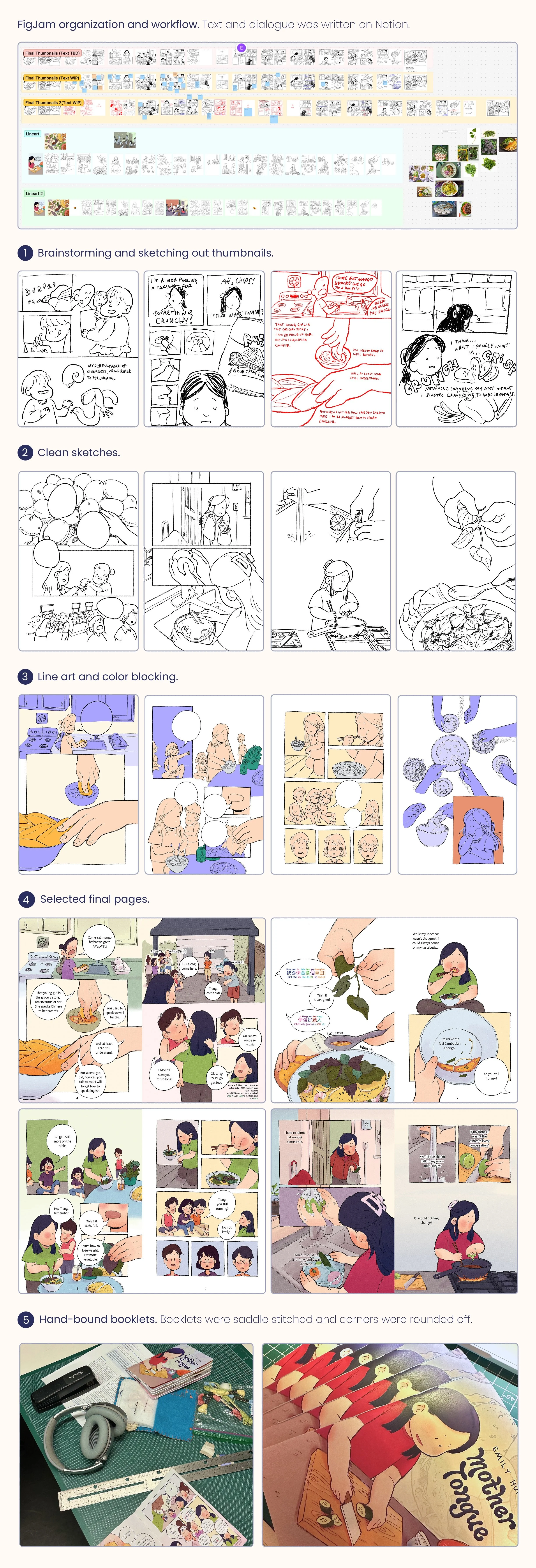 This graphic medicine piece also features a spoken Chinese dialect, Teochew. Considered to be an endangered language with no standard writing system, it uses Chinese characters with unique pronunciation. More specifically, the Teochew in this piece is Cambodian-Teochew. This piece employs a unique method of color-coding the Chinese characters, Teochew romanization, and English translation.